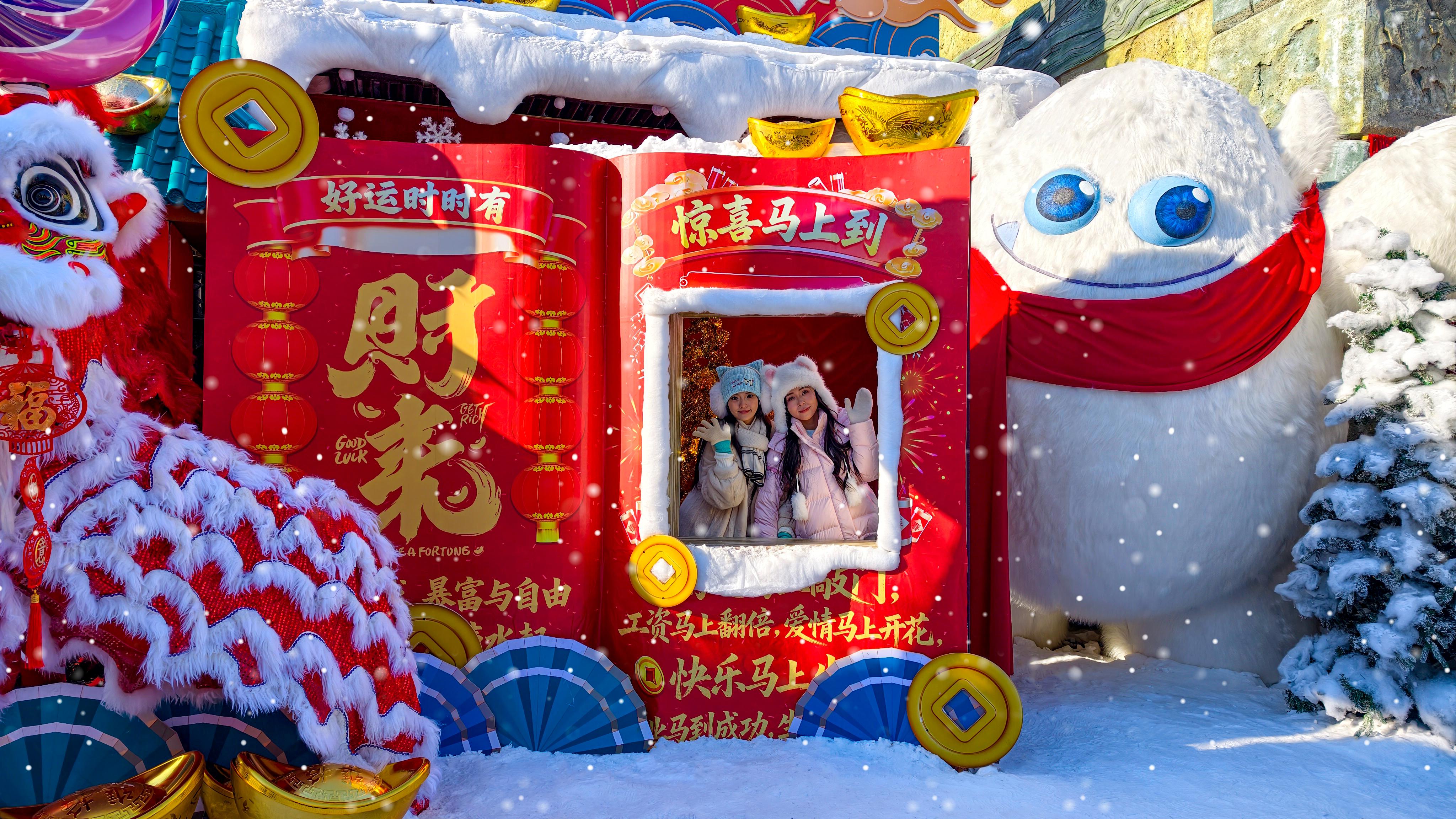 새로 선보이는 새해 버전 '빙설마을'이 관광객들의 큰 사랑을 받고 있으며 여러 개의 거대한 '눈괴물'에 설맞이 요소를 가미해 총 10가지 테마 포토 존을 구성했다. 10미터 높이의 금색 '행운의 나무' 아래에서는 매일 랑만적인 환상 눈쇼가 펼쳐져 방문객들이 자연 강설을 기다리지 않아도 몰입형으로 랑만적인 설국의 분위기를 느낄 수 있다. 일련의 빙설조형물, 얼음터널, 얼음왕좌, 빙설 상호작용 벽 그리고 무료로 리용 가능한 썰매, 눈썰매 체험은 함께 즐기고 사진 찍을 수 있는 하나의 빙설 비경을 구성한다.
