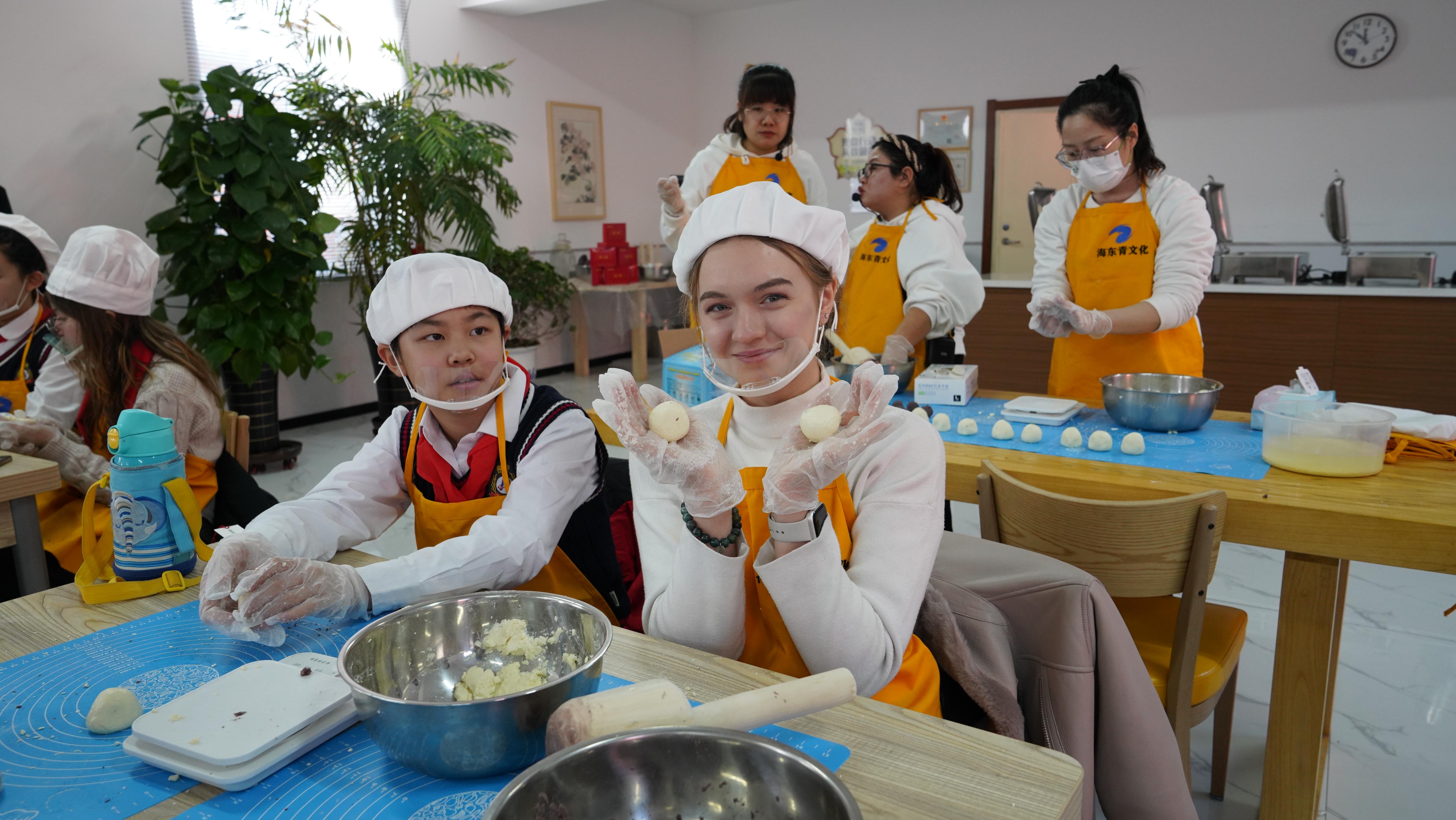 러시아 학생이 목단강 해동청문화창의원 연학수업에서 중국 전통음식 조리기술을 체험하고 있다. (사진 제공: 흑룡강성 문화관광청)