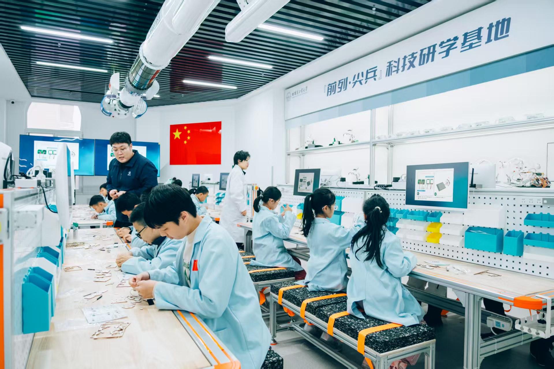 전국 각지에서 온 어린 학생들이 할빈공업대학 '선두·정예병' 과학기술 연학기지에서 수업을 받고 있다.