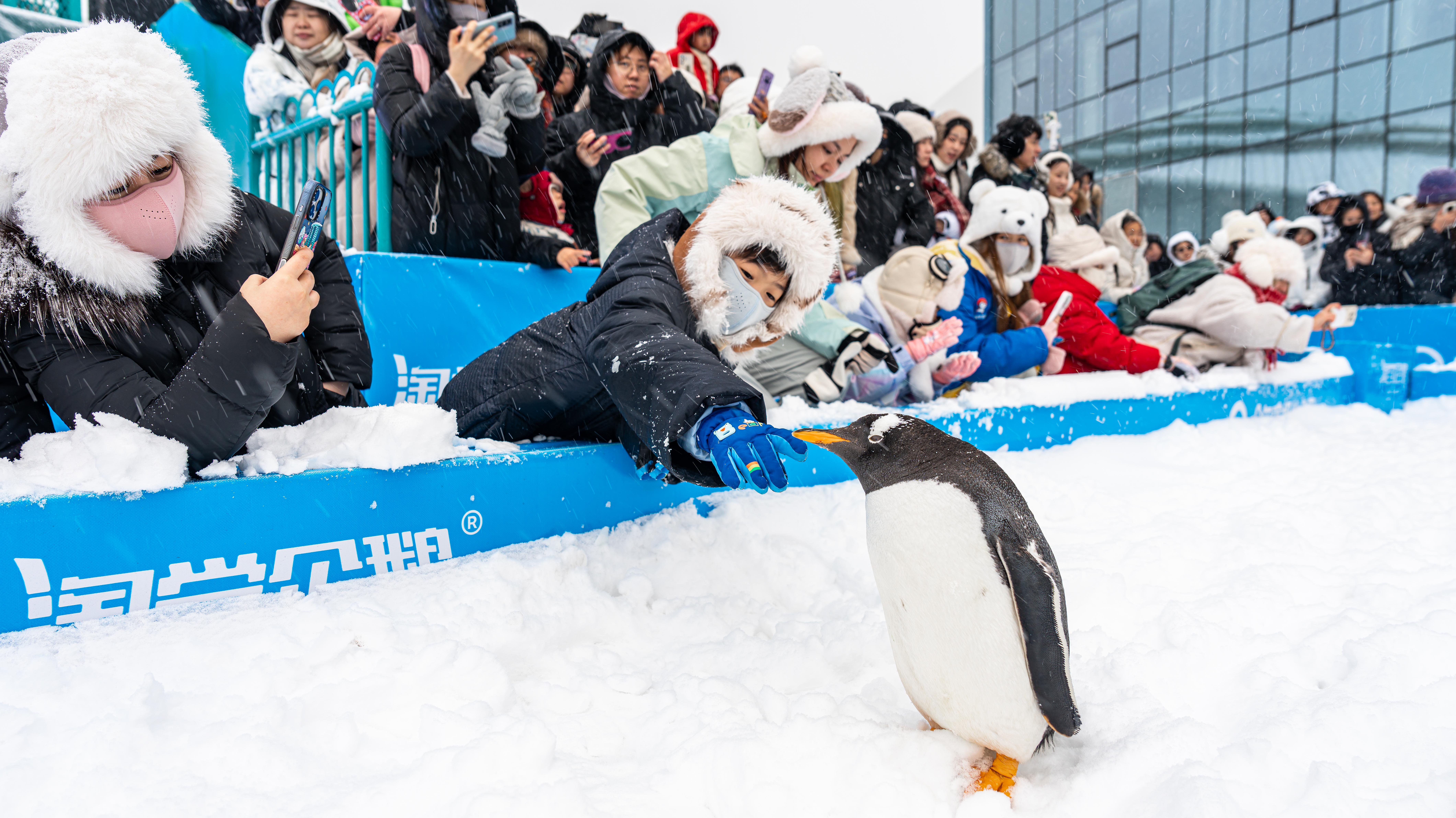 전국 각지의 연학팀이 할빈극지공원을 찾아 '배낭펭귄''을 구경하고 있다. (사진 제공: 할빈극지공원)