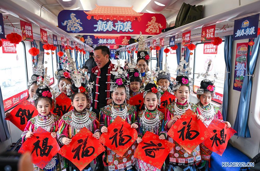 음력설이 다가오자 귀주성 귀양시에서 옥평(玉屏)뚱족족자치현으로 향하는 5640편 완행렬차가 새롭게 단장됐다. 축제 분위기의 객실, 신선한 농산물, 특색 민족 가무, 무형문화유산 전시 등이 신춘 분위기를 한껏 고조시켰다.