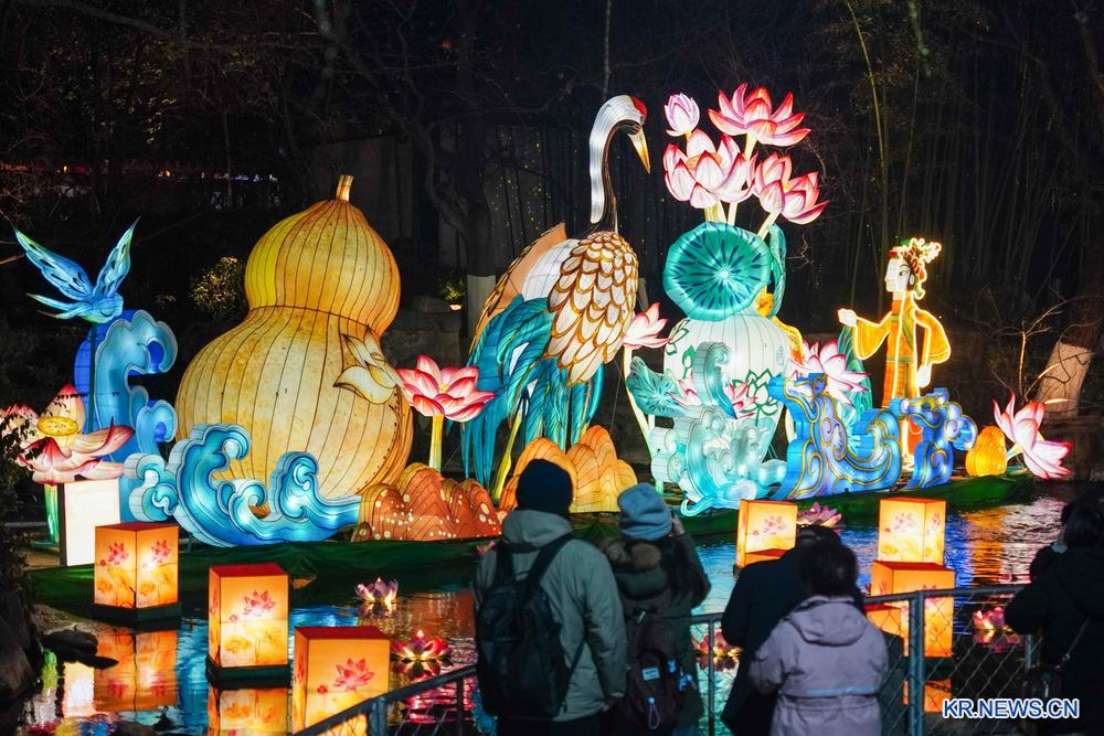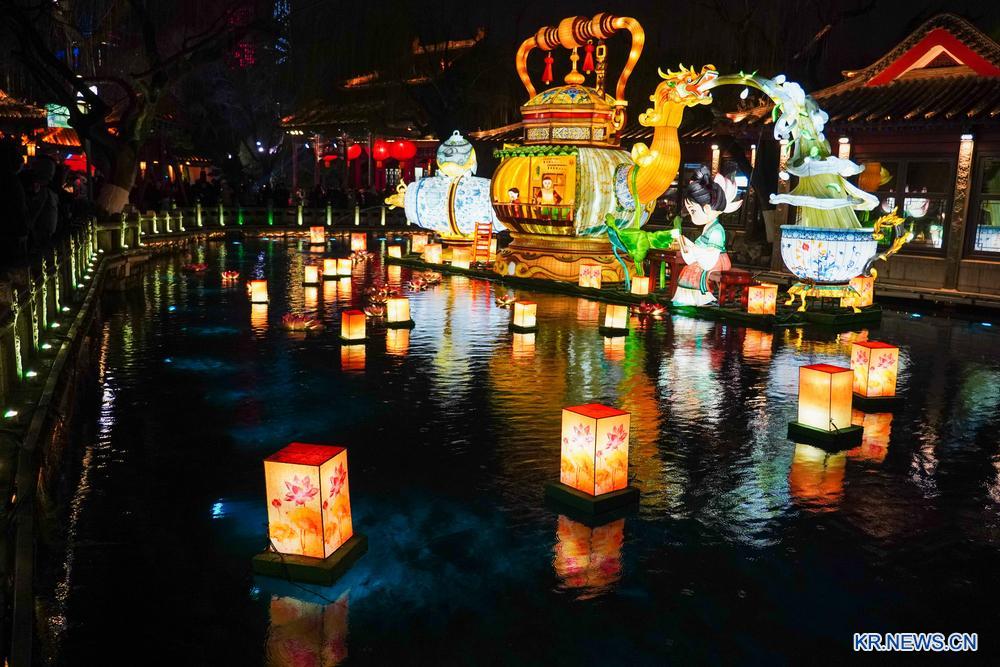 정월대보름이 다가오면서 산동성 제남시 천하제일천풍경구에 다채로운 색상과 다양한 형태의 등불이 밝혀졌다.
