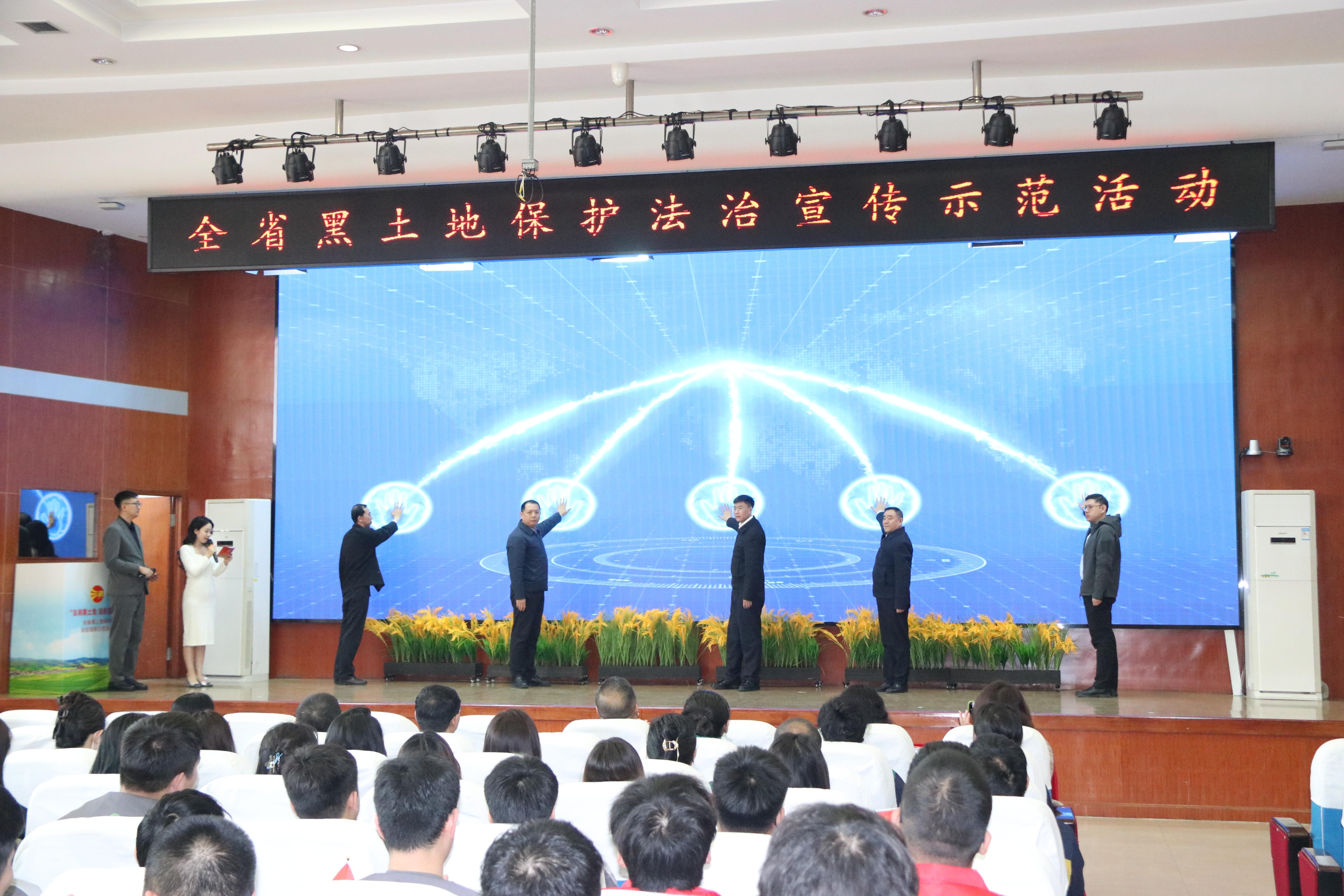 행사장에서는 처음으로 전 성 흑토지보호 법치선전 창의서를 발포하고 '흑토지보호 법률보급 강연단' 기발수여식을 거행했다. 기치의 인수인계에 따라 각 시(지구)는 본 지역의 법학, 농학 등 재학생들이 조직한 전문강연단을 통합하여 책임과 사명을 가지고 촌툰에 들어가 련동하여 '흑토지보호' 법률보급선전대집을 개최하고 지역식 련동 강연을 광범위하게 전개하여 흑토지보호 법치리념이 룡강대지에 뿌리를 내리고 싹을 틔우고 꽃을 피우고 열매를 맺도록 착실하게 추진할 것이다.
