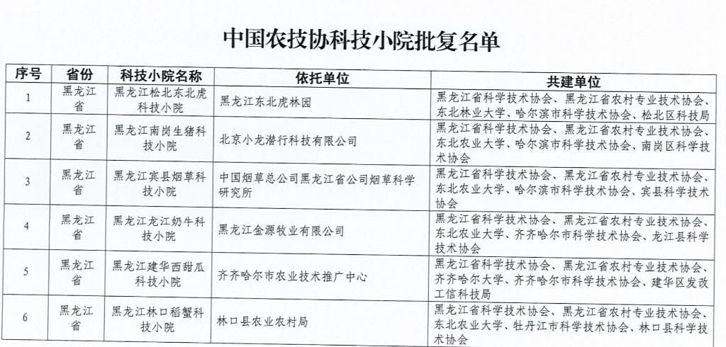 흑룡강성과학기술협회에 따르면 최근 중국 농촌전문기술협회는 '중국 농촌전문기술협회 흑룡강 남강 돼지 과학기술 소규모 정원' 등 흑룡강성 소재 20개 과학기술 소규모 정원의 설립을 승인했다. 유효 기간은 3년이다.