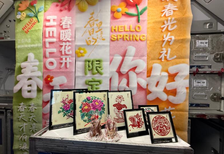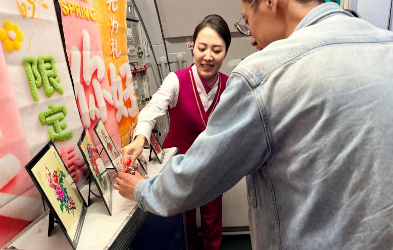 승무원들은 맞춤 제작한 봄맞이 무형문화재 테마 손패말, 살구꽃 가지 플라워 아트, 미니 무형문화재 전시품 등으로 객실을 정성스럽게 꾸며 풍성한 봄·무형문화재 분위기를 연출했다. 승객들은 하나둘 자리에서 일어나 사진을 찍으며 하늘 우 무형문화재 려행의 아름다운 순간을 카메라에 담았다. 승무원들은 표준 제복에 해륜 종이공예의 봄 제비 문양 스카프, 어룬춘족 사슴가죽 봄꽃·새 브로치 등 무형문화재 액세서리를 매치해 맑고 우아한 이미지로 등장, 따뜻한 기내 방송을 통해 승객들에게 봄 인사를 전하며 본격적인 하늘 우 무형문화재 봄맞이 려행을 시작했다.