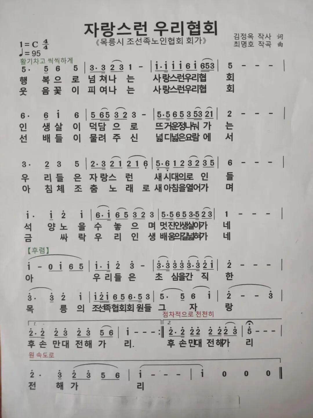 이리하여 목릉시조선족로인협회 회가는 따뜻한 봄기운을 듬뿍 머금으며 고고성을 울리게 되였다.