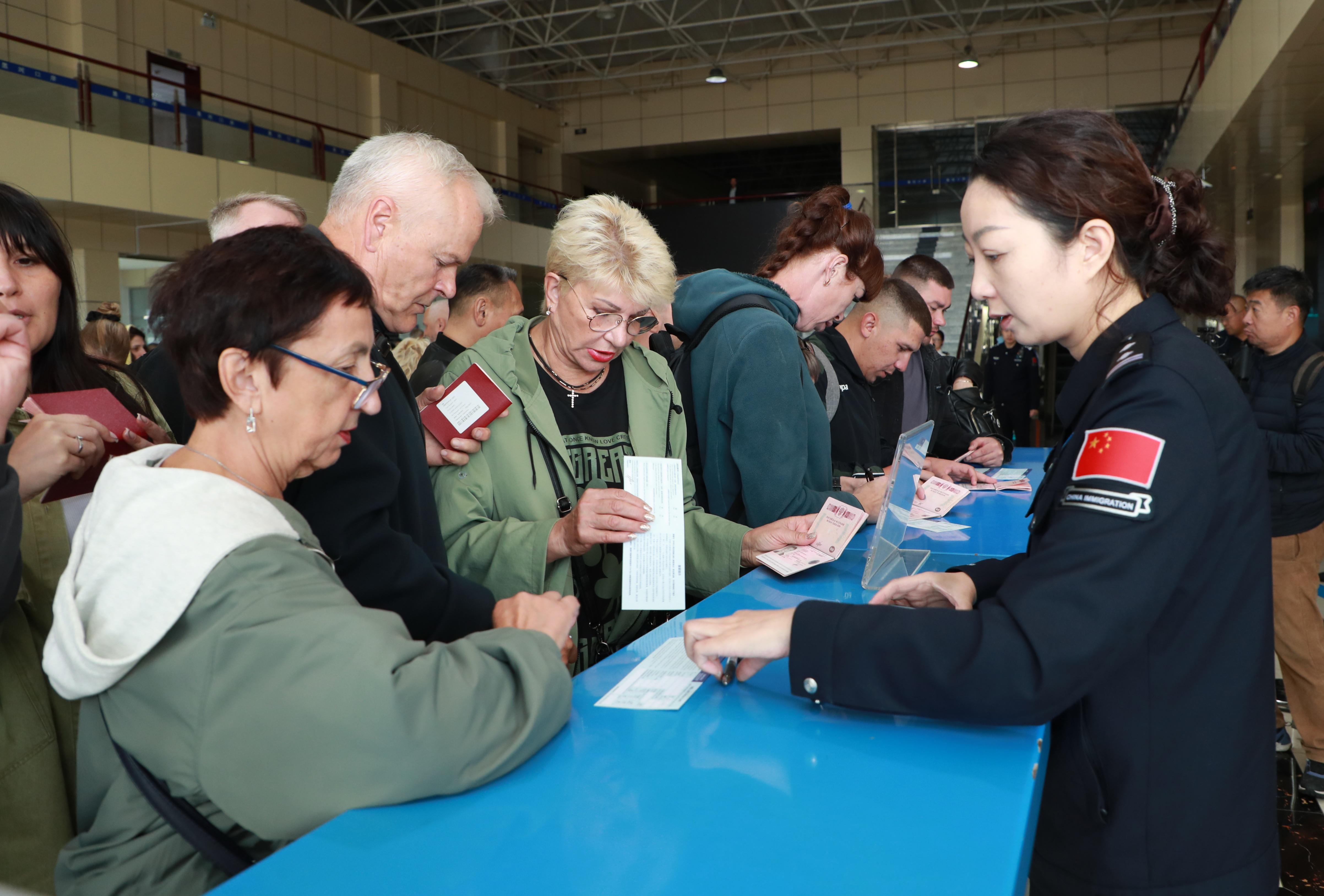 흑하 통상구뿐만 아니라 흑룡강 성내 각 통상구에서도 다양한 러시아 입국 려행객의 류입이 이루어지고 있다. 수분하통상구에서는 금발 푸른 눈의 러시아인 가족들이 함께 쇼핑하는 모습이 흔히 보이며 길거리 량쪽의 중·러 이중 언어 간판은 이미 보편화 되였다. 현지 여러 렌터카 업체는 전 과정 러시아어 서비스를 새로 추가했으며 러시아 관광객은 통상구 서비스 창구에서 려권과 자국 운전면허증을 제출하고 중국 교통 법규 홍보 영상을 시청한 후 현장에서 '림시자동차 운전면허증'을 발급받을 수 있어 목단강시 주변을 자유려행 방식으로 깊이 있게 려행할 수 있다.