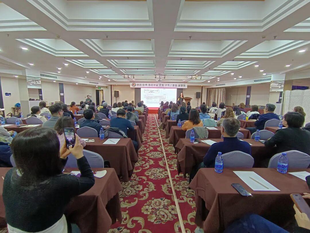 남경시 정부가 주최한 녀성과 가정행복을 위한 강연현장에서 '정리수납'에 대해 심도있게 강연하고 있는 정경자 박사.