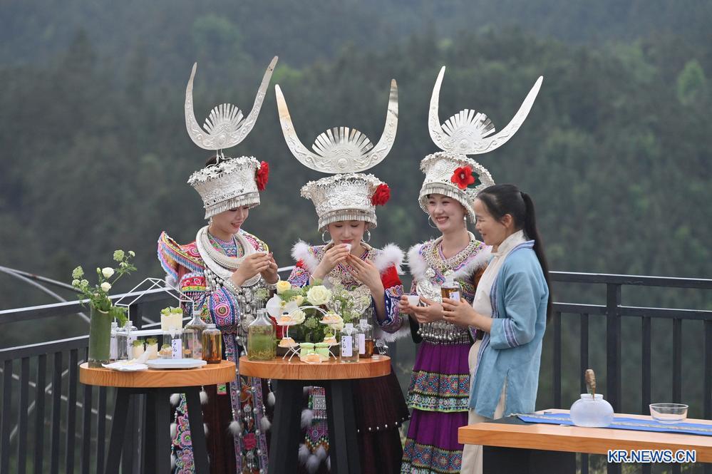 12일 광서쫭족자치구 류주시 융수묘족자치현에서 광동과광서에서 협력한 대묘산 봄나들이 차(茶)∙관광 문화 행사가 열렸다. 차 판매자와 관광객들이 이 마을에 모여 봄 풍경을 감상하고 봄차를 맛보며 산업 발전 방향을 론의했다.
