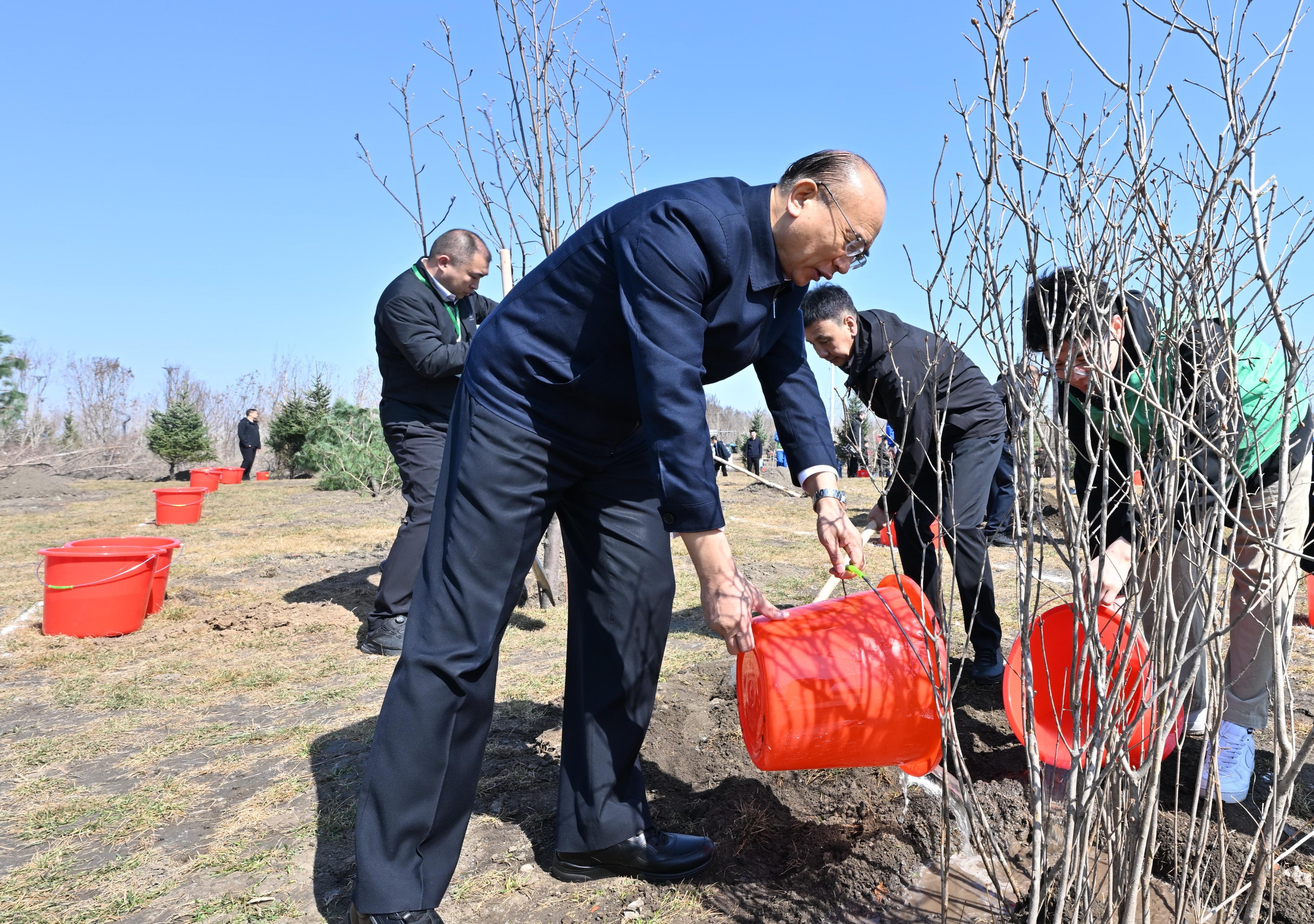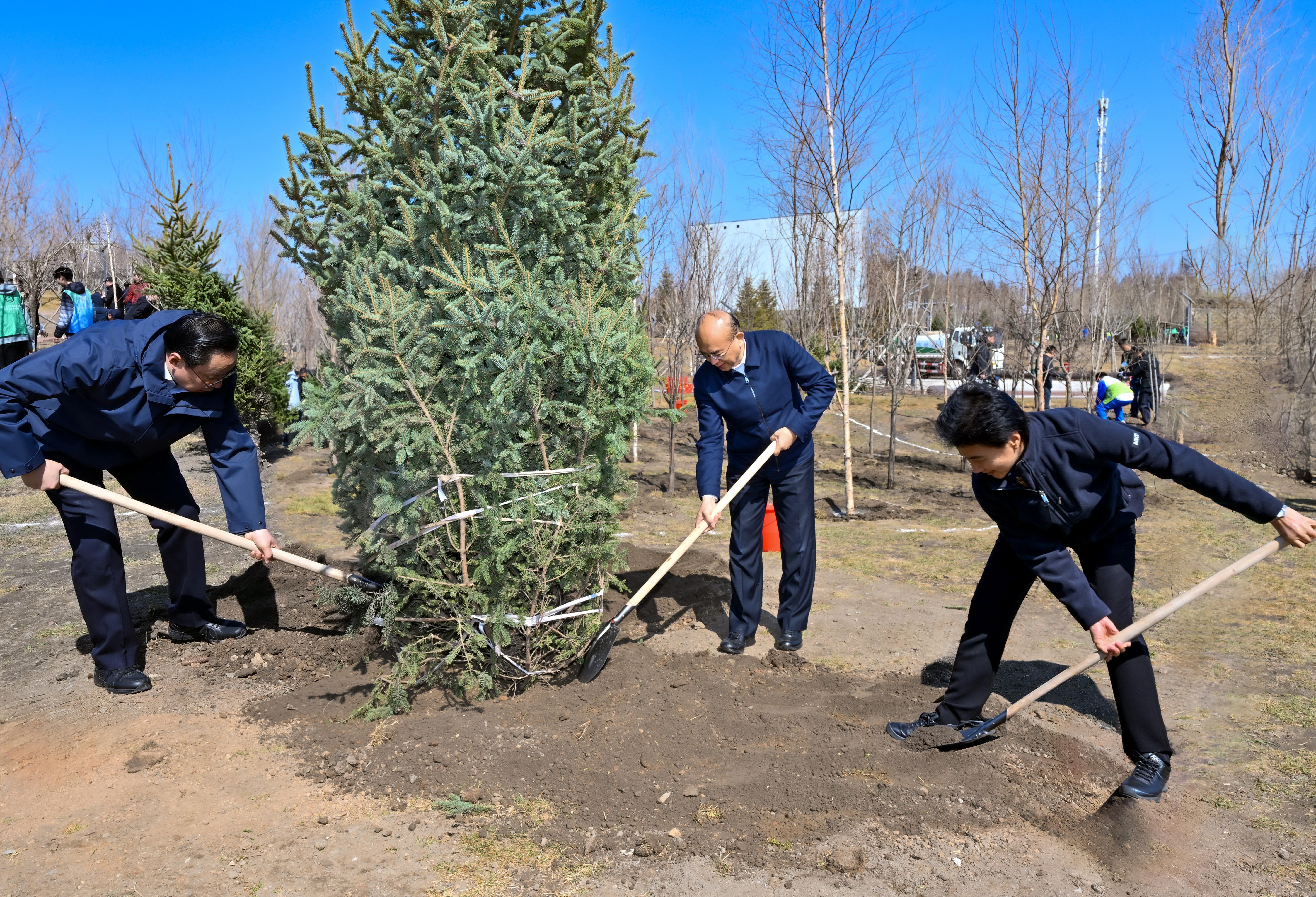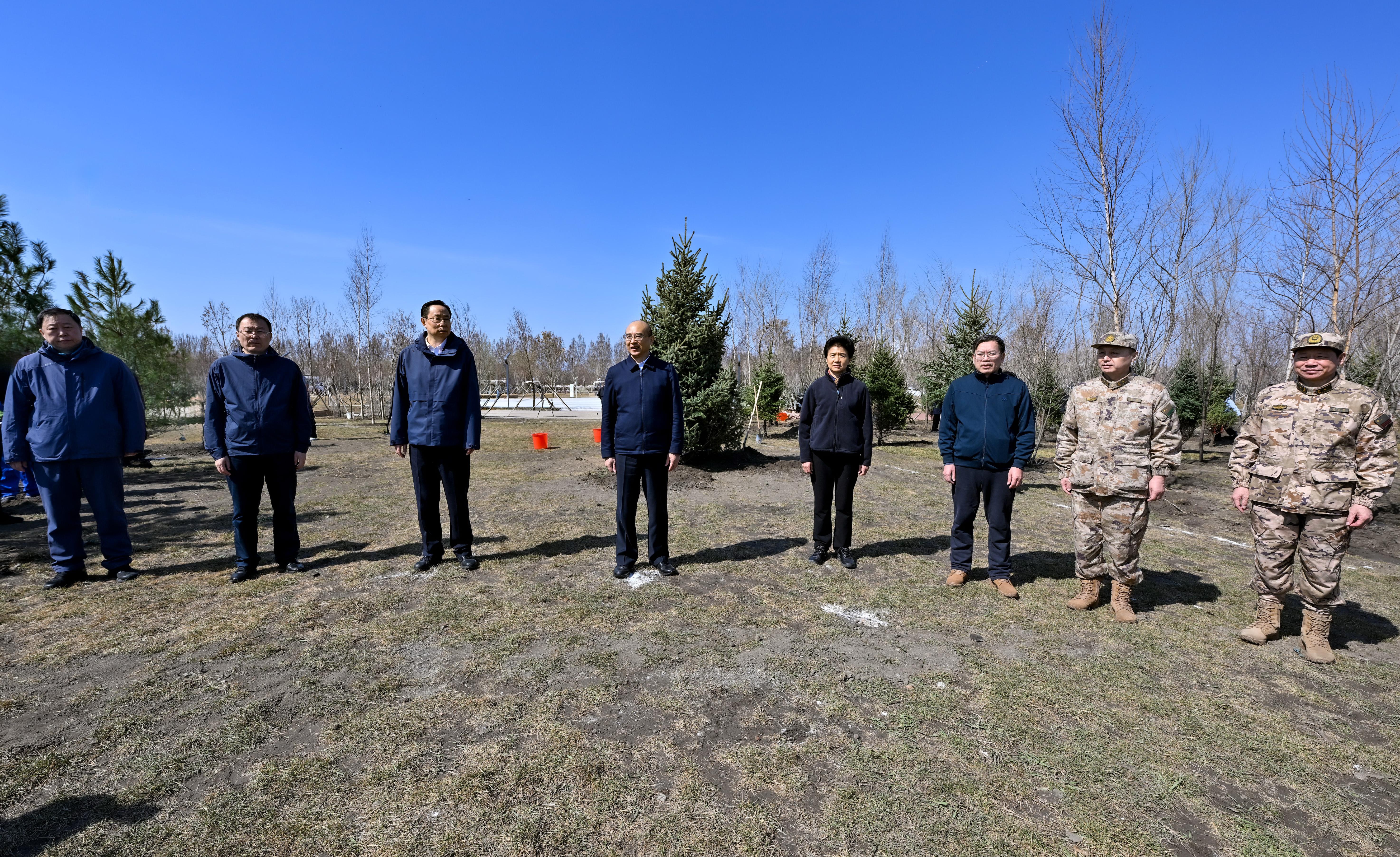 허근 서기는 또한 강조했다. "올해는 '14.5' 규획 시작의 해이자 전국민 의무 식수 운동이 시작된 지 45주년이 되는 해이다. 각지와 관련 부문들은 정치적 립지를 견지하고 습근평 생태문명사상을 충실히 실천하며 록색을 늘리는 것이 우위를 늘리는 것이고 숲을 보호하는 것이 부를 보호하는 것이며 나무를 심는 것이 미래를 심는 것임을 명심하고 국가 생태안전을 수호하는 정치적 책임을 결연히 짊어져야 한다. 옳바른 정치공적관을 확고히 수립하고 실천하며 생태 우선, 록색 발전을 견지하고 록지를 확대하고 키우고 보호함으로써 조국 북방 생태안전의 장벽을 공고히 하고 록색 룡강, 아름다운 중국 건설에 더 큰 기여를 해야 한다."