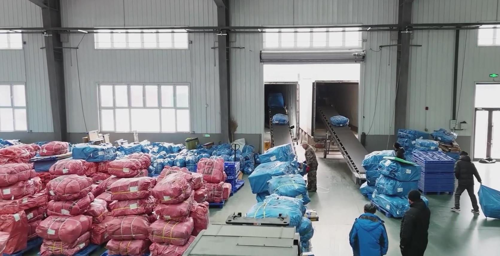 19일, 수분하시 크로스보더 전자상거래 물류 현장에서는 수출을 기다리는 전자상거래구매 물품들이 직원들의 신속하고 정돈된 배치와 심사를 거친 후 차량에 실려 발송되였다.